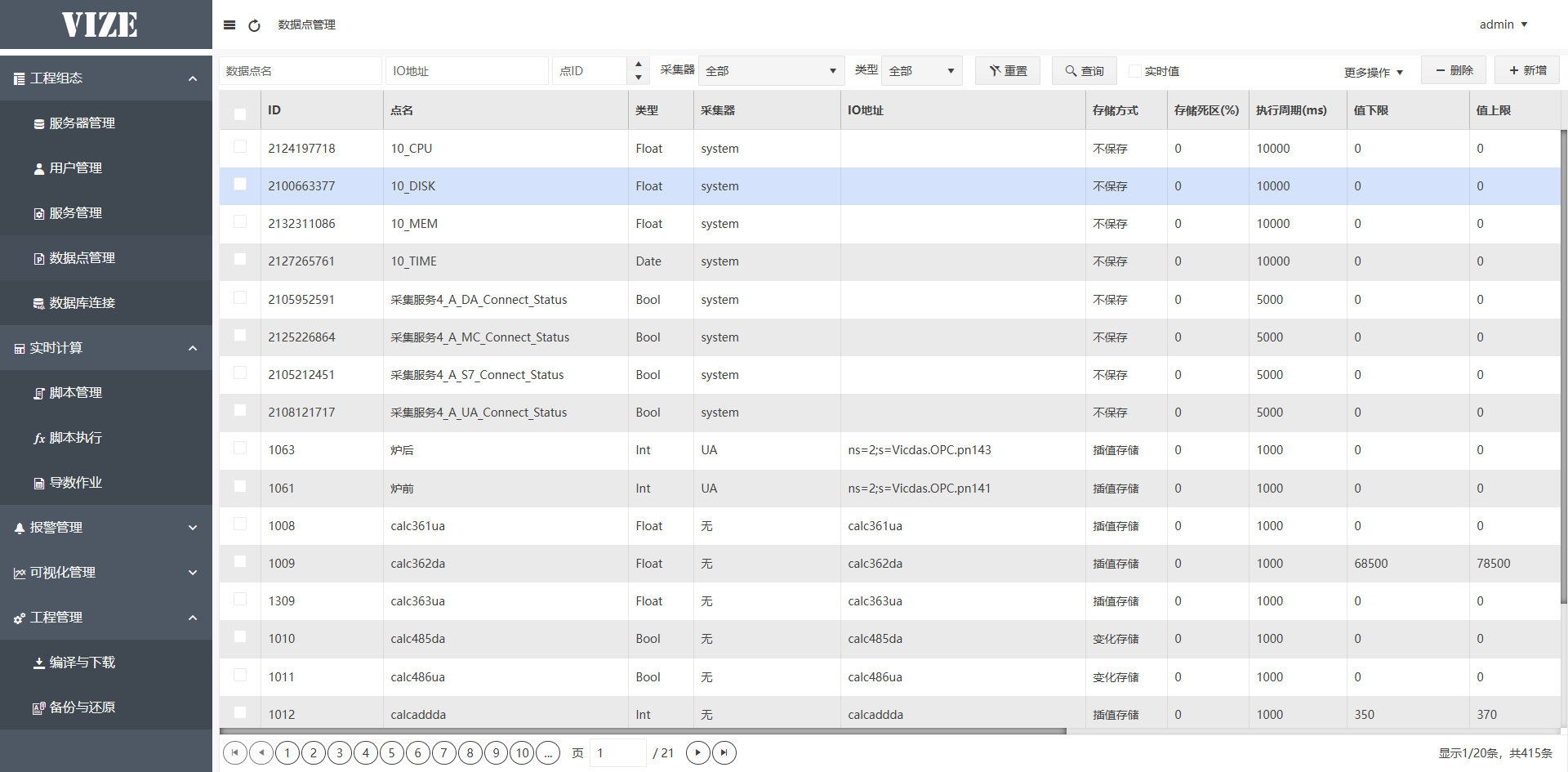 周期性将测点实时、聚合统计数据导入到关系库。
