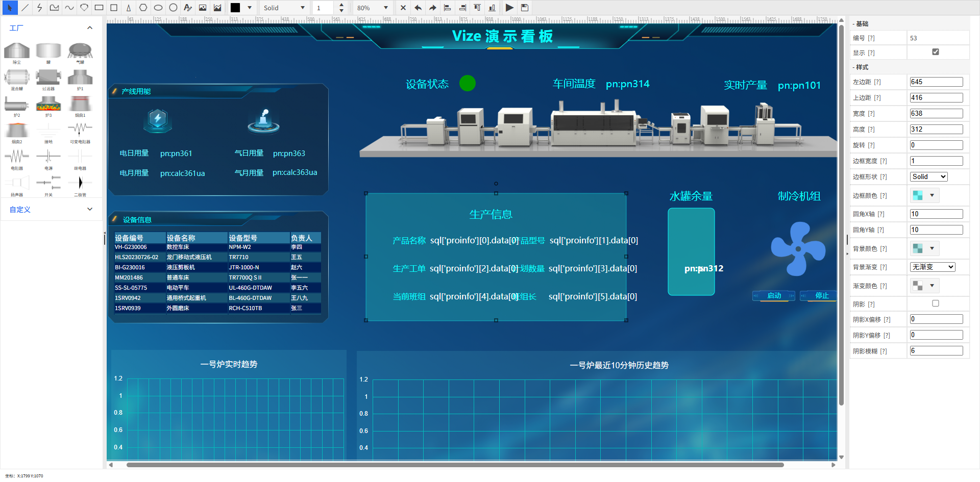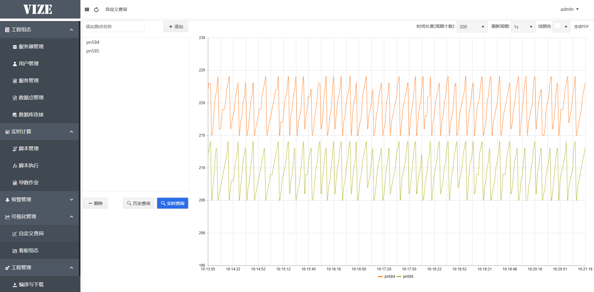 实时监测生产状态,对于越限数据发出报警信息。